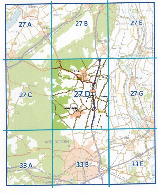 De topografische kaart op de schaal 1:25.000 geeft een zeer gedetailleerd beeld van het terrein. Prima kaart om mee te wandelen, er zijn geen Nederlands kaartenseries met meer detail! Ze zijn niet in eerste instantie bedoeld als toeristische kaarten, hetgeen betekent dat er bijvoorbeeld geen wandelknooppunten of gemarkeerde routes op staan ingetekend. Maar wel alle voetpaden, en wel héél precies. Daarnaast bieden ze veel inzicht in landgebruik, reliëf (hoogtelijnen), bebouwing, wegenpatroon, water, natuur, etc. Daarmee zijn ze de beste kaarten om van tevoren een gebied te verkennen en/of je route mee te plannen.