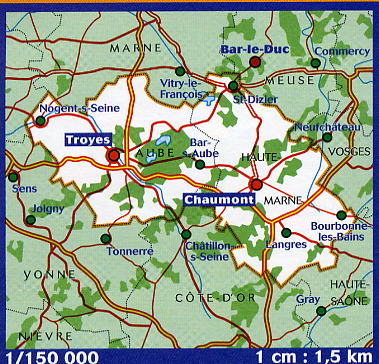 313 Aube, Haute-Marne | Michelin wegenkaart 1:150.000