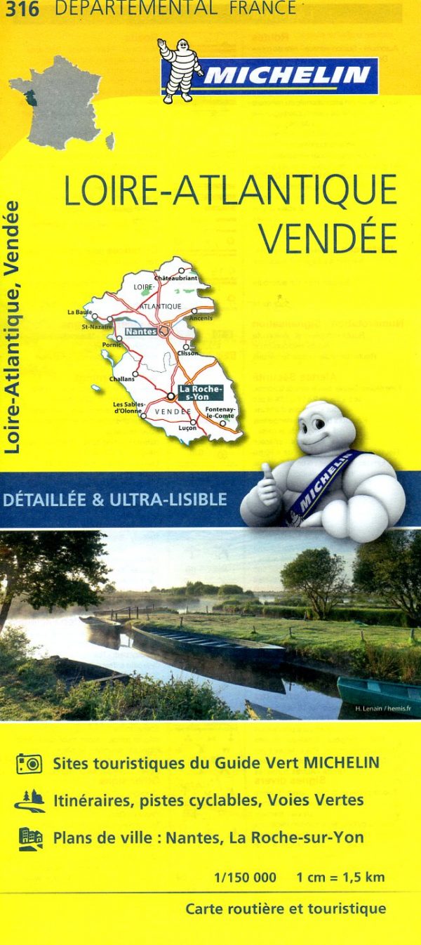 Kaarten en gidsen > Kaarten & plattegronden > Landkaarten en wegenkaarten > Europa > Frankrijk > Zuidwest-Frankrijk > Vendée, Charente > 316 Loire-Atlantique, Vendée | Michelin wegenkaart 1:150.000