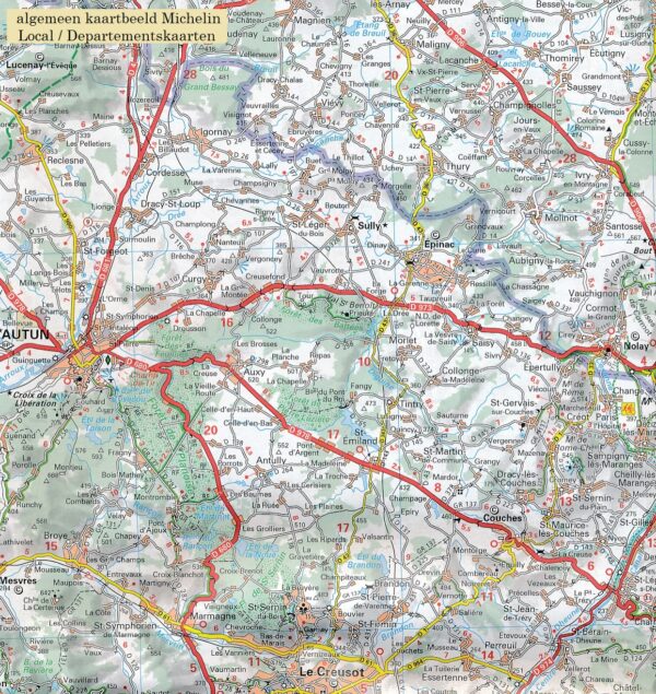Gedetailleerde wegenkaart. Met stadsplattegronden en (subtiele) intekening van GR-paden en voies vertes (rustige, groene fietsweggetjes, vaak over verlaten spoorwegen). *** Michelin wegenkaarten behoren nog altijd tot de beste in hun soort. De goed uitgebalanceerde cartografie toont precies datgene wat de lezer wil zien (en ook niet meer dan dat!). Contrastrijke weergave van alle wegen (van groot tot klein), veel details (kilometerafstanden, pompstations, wegnummers, reliëf), hoofdstratenpatronen van woonkernen en tenslotte een prettig spaarzaam gebruik van toeristische symbolen en weergave landschappelijke details. Michelinkaarten met een schaal van 1:200.000 of fijner zijn zeer geschikt voor fietsers.