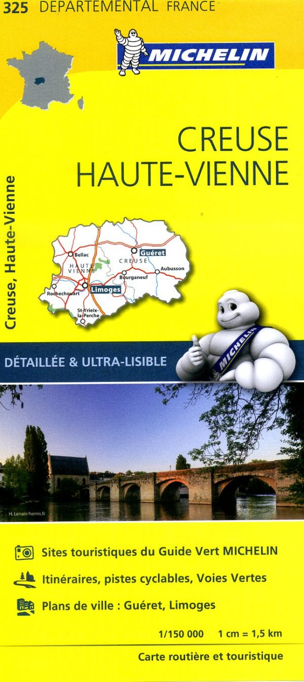 Kaarten en gidsen > Kaarten & plattegronden > Landkaarten en wegenkaarten > Europa > Frankrijk > Zuidwest-Frankrijk > Creuse, Corrèze > 325 Creuse, Haute-Vienne | Michelin wegenkaart 1:150.000