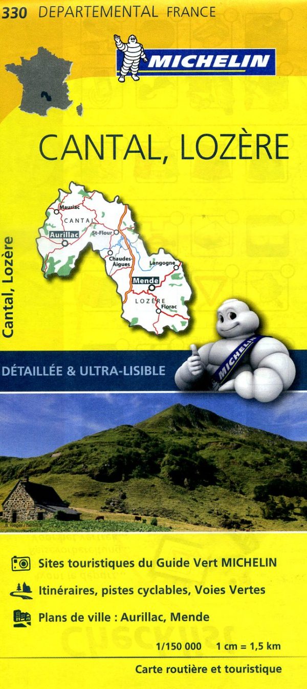 Kaarten en gidsen > Kaarten & plattegronden > Landkaarten en wegenkaarten > Europa > Frankrijk > Zuidoost-Frankrijk > Auvergne > 330 Cantal, Lozère | Michelin wegenkaart 1:150.000