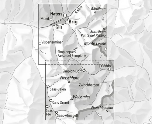 Kaarten en gidsen > Wandelen > Wandelkaarten > Europa > Zwitserland en Oostenrijk (en Alpen als geheel) > Zwitserland > Wallis > Oberwallis > 3319T Simplon | wandelkaart 1:33.333