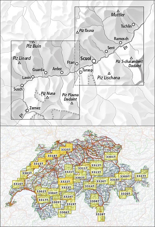 Kaarten en gidsen > Wandelen > Wandelkaarten > Europa > Zwitserland en Oostenrijk (en Alpen als geheel) > Zwitserland > Graubünden > 3327T Unterengadin | wandelkaart 1:33.333