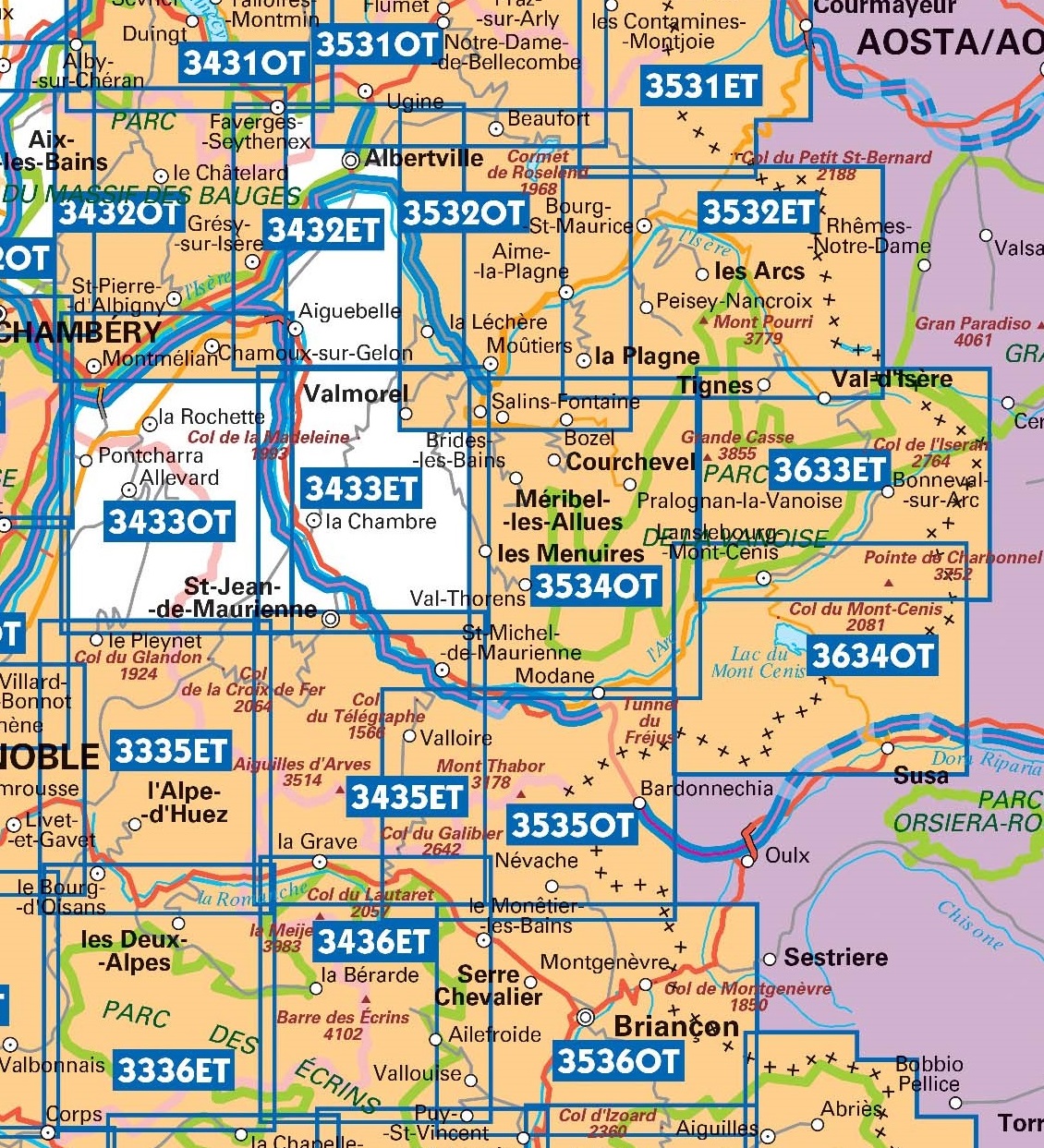 Kaarten en gidsen > Wandelen > Wandelkaarten > Europa > Frankrijk > Zuidoost-Frankrijk > Franse Alpen: noord > Vanoise, Savoie > 3534OTR les Trois Vallées, Modane, PN de la Vanoise | wandelkaart 1:25.000