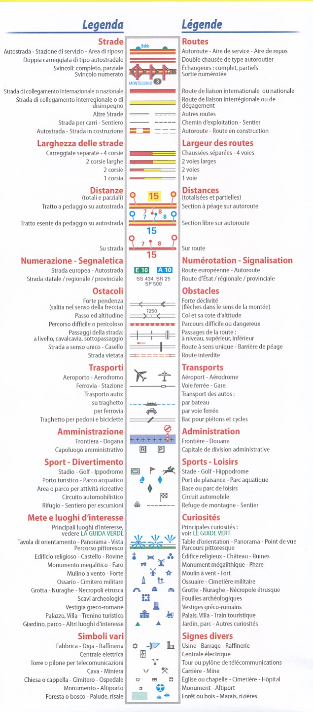 Michelinkaarten zijn heldere wegenkaarten, prima te gebruiken door automobilisten en vanaf een schaal van 1:200.000 of gedetailleerder, ook door fietsers. Daarnaast zijn het ook gewoon goede overzichtskaarten. Ze tonen gedetailleerd alle hoofdwegen en verbindingswegen tussen alle plaatsen, tot en met de kleinste dorpen. Uitgebreid met andere belangrijke weginformatie, zoals tolwegen, tankstations, parkeerplaatsen, af- en opritten, wegnummers, campings, hoogteverschillen, winterafsluitingen en groene routes. Het zijn dus complete kaarten voor onderweg. De Michelinkaarten van Italië zijn gemaakt op basis van een satellietfoto.