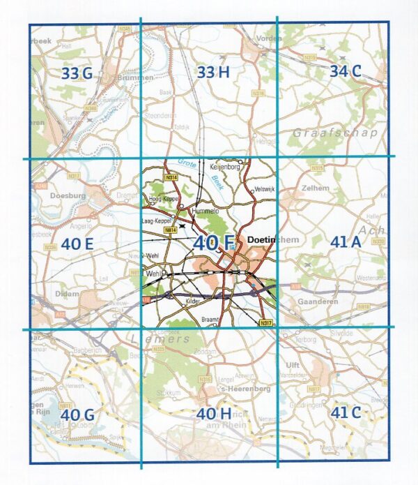 De topografische kaart op de schaal 1:25.000 geeft een zeer gedetailleerd beeld van het terrein. Prima kaart om mee te wandelen, er zijn geen Nederlands kaartenseries met meer detail! Ze zijn niet in eerste instantie bedoeld als toeristische kaarten, hetgeen betekent dat er bijvoorbeeld geen wandelknooppunten of gemarkeerde routes op staan ingetekend. Maar wel alle voetpaden, en wel héél precies. Daarnaast bieden ze veel inzicht in landgebruik, reliëf (hoogtelijnen), bebouwing, wegenpatroon, water, natuur, etc. Daarmee zijn ze de beste kaarten om van tevoren een gebied te verkennen en/of je route mee te plannen.