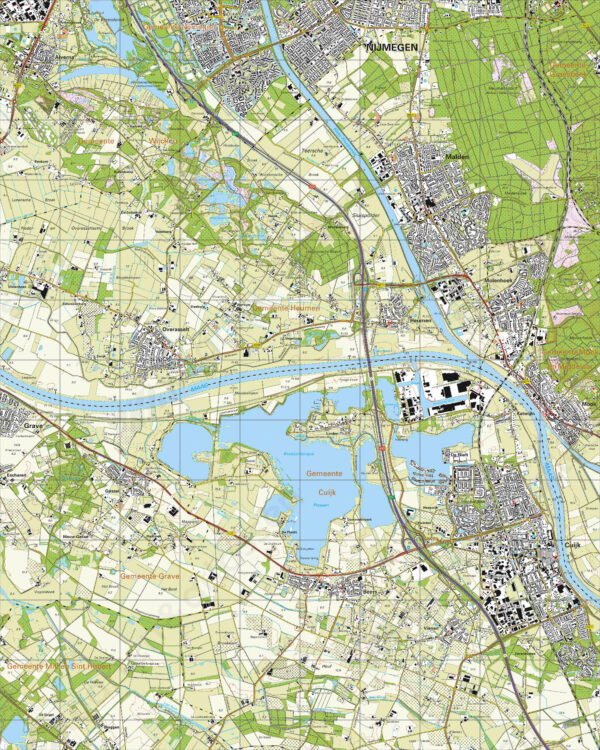 De topografische kaart op de schaal 1:25.000 geeft een zeer gedetailleerd beeld van het terrein. Prima kaart om mee te wandelen, er zijn geen Nederlands kaartenseries met meer detail! Ze zijn niet in eerste instantie bedoeld als toeristische kaarten, hetgeen betekent dat er bijvoorbeeld geen wandelknooppunten of gemarkeerde routes op staan ingetekend. Maar wel alle voetpaden, en wel héél precies. Daarnaast bieden ze veel inzicht in landgebruik, reliëf (hoogtelijnen), bebouwing, wegenpatroon, water, natuur, etc. Daarmee zijn ze de beste kaarten om van tevoren een gebied te verkennen en/of je route mee te plannen.
