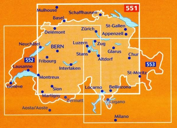 Kaarten en gidsen > Kaarten & plattegronden > Landkaarten en wegenkaarten > Europa > Zwitserland en Oostenrijk (en Alpen als geheel) > Zwitserland > 551 Suisse Nord | Michelin wegenkaart, autokaart 1:200.000
