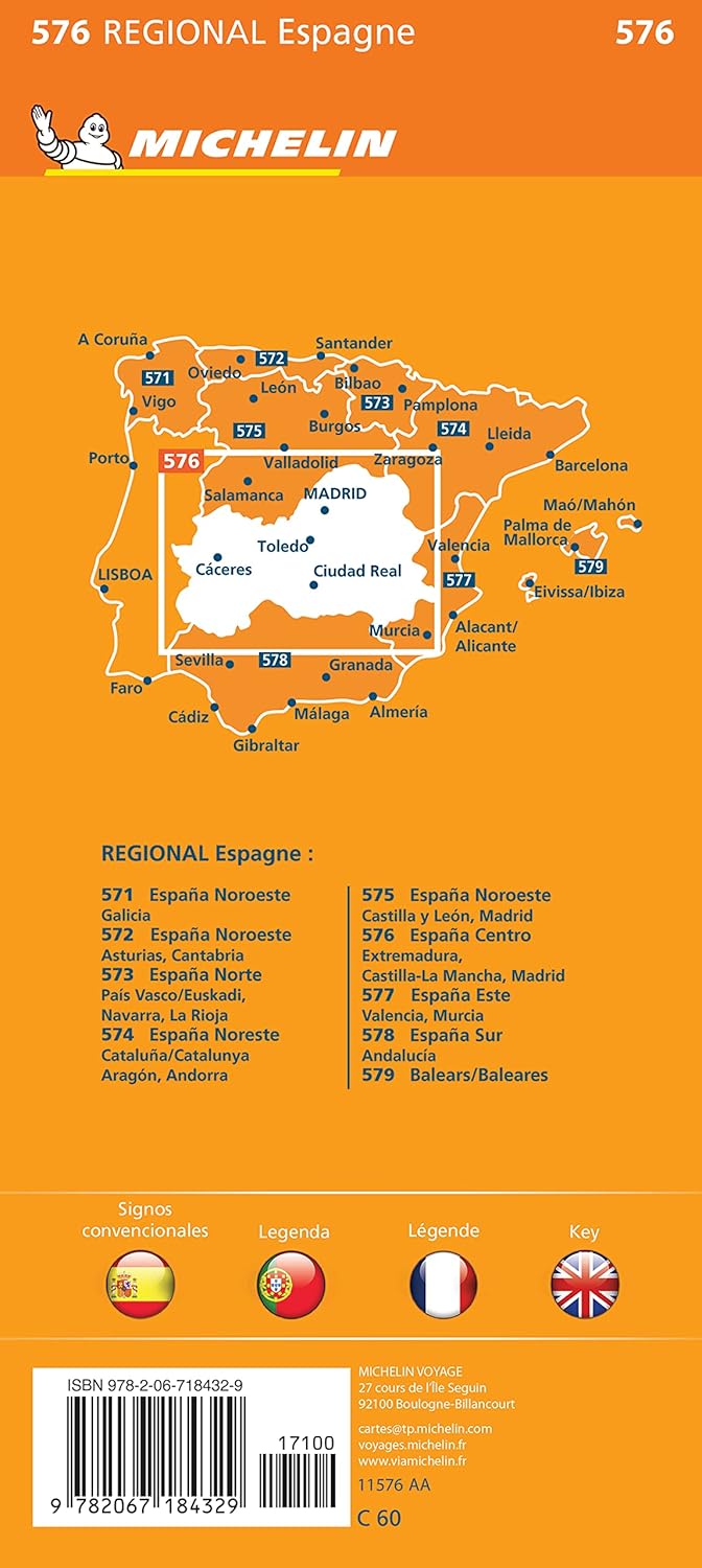Kaarten en gidsen > Kaarten & plattegronden > Landkaarten en wegenkaarten > Europa > Zuid-Europa / Middellandse Zee > Spanje > Madrid & Midden-Spanje > 576 Extremadura, Castilla, Madrid Michelin wegenkaart 1:400.000