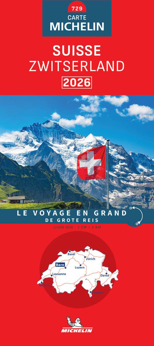 Kaarten en gidsen > Kaarten & plattegronden > Landkaarten en wegenkaarten > Europa > Zwitserland en Oostenrijk (en Alpen als geheel) > Zwitserland > 729 Zwitserland 2026 | Michelin wegenkaart, autokaart 1:400.000