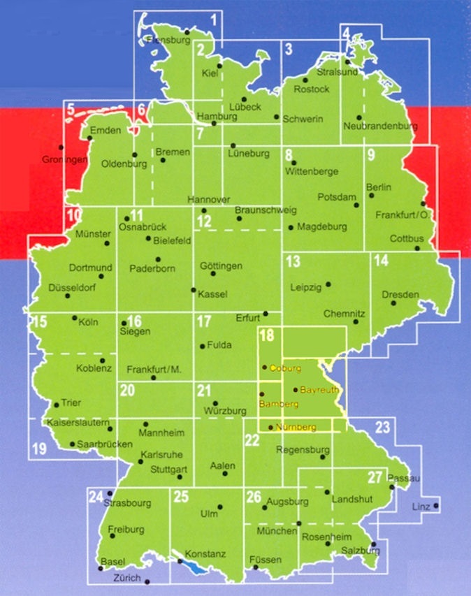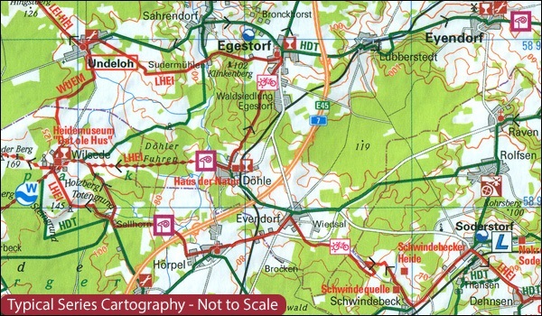 Geschikte fietskaarten voor het maken van langere routes. Scheur- en watervast. Met aanduiding van fietsroutes, campings, jeugdherbergen, steile en minder steile hellingen (dmv pijltjes), etc. De kaarten geven, anders dan 'normale' wegenkaarten, juist de verkeersluwe landwegen met duidelijke kleuren aan, en de drukke - voor fietsers ongeschikte - wegen grijs. Dat is wel even wennen maar uiteindelijk heel efficient.