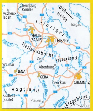 Kaarten en gidsen > Fietsen > Fietskaarten > Europa > Duitsland > Oost-Duitsland > Sachsen > Sächsische Schweiz, Elbsandsteingebirge, Erzgebirge > ADFC-13 Saale/Westl.Erzgebirge | fietskaart 1:150.000