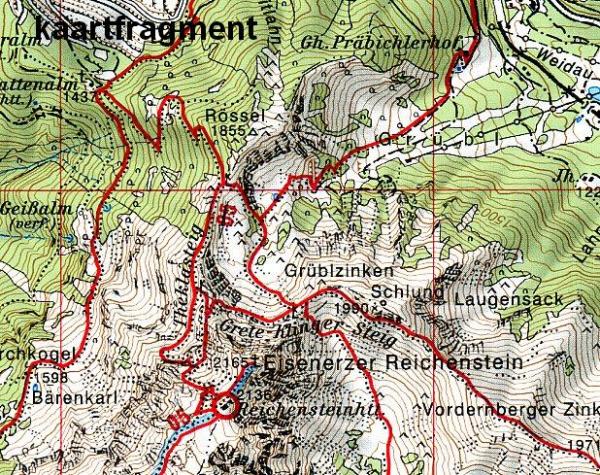 Gedetailleerde wandelkaart / bergsportkaart van de omgeving van de Hochschwabgruppe.