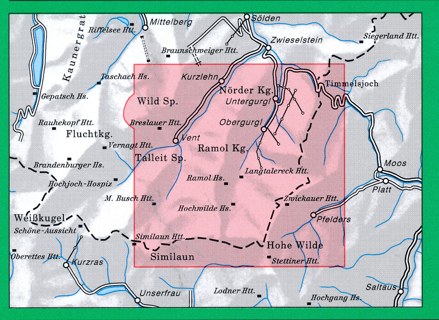 Gedetailleerde wandelkaart / bergsportkaart van de omgeving van de Ötztaler Alpen / Gurgl.