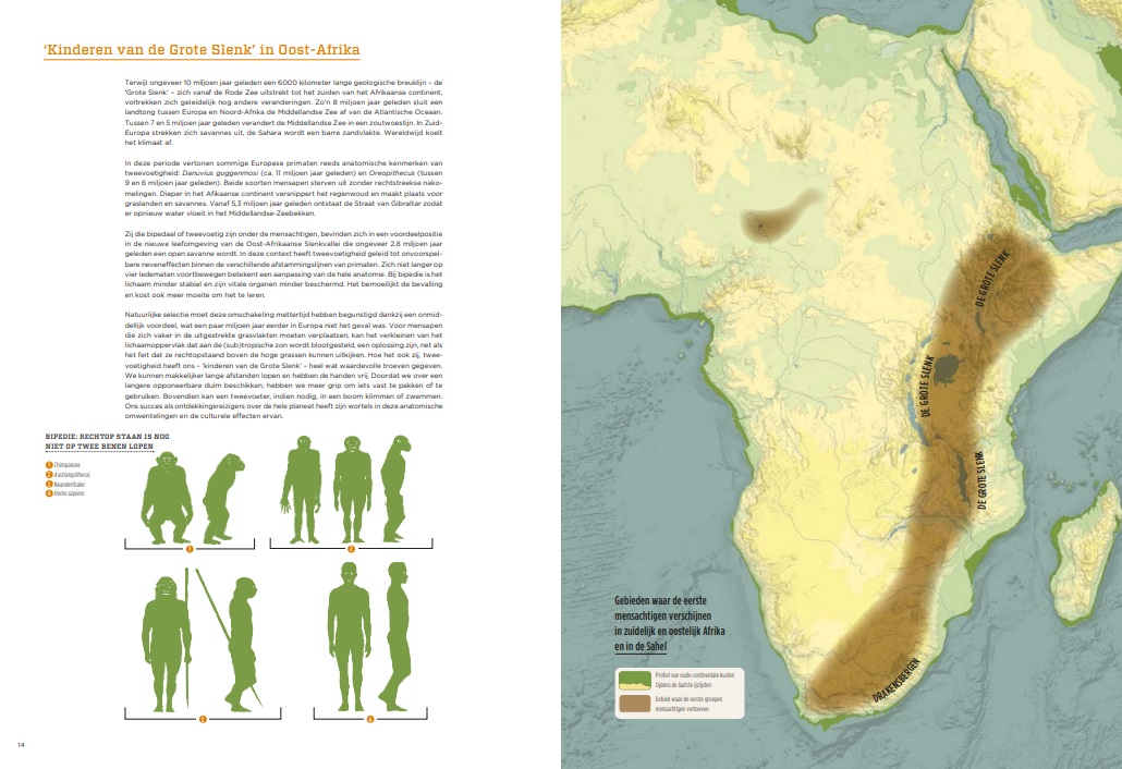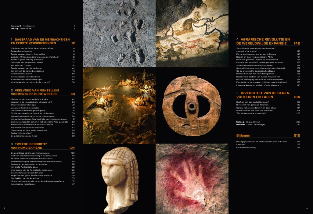 We zien en lezen hoe onze voorouders samenleefden met de Neanderthalers, de Denisova-mens en de Floresmens. Ook zien we waar en wanneer de verschillende talen ontstonden en waar de domesticatie van dieren en de landbouw begon. De atlas brengt kennis uit de archeologie, paleontologie en genetica, geografie, geschiedenis, etnologie en natuurwetenschappen samen. Het resultaat is een schitterend boek vol intrigerende kaarten, schema's, foto's, chronologische tabellen en reconstructies van vroege menssoorten.