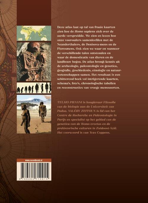 TELMO PIEVANI is hoogleraar Filosofie van de biologie aan de Universiteit van Padua. VALÉRY ZEITOUN is lid van het Centre de Recherche en Paléontologie in Parijs en specialist op het gebied van de genetica van de Homo erectus en de prehistorische culturen in Zuidoost-Azië.