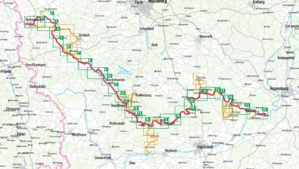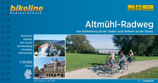 Deel uit een serie praktische duitstalige fietsroutegidsjes in handig formaat met spiraalbinding; gedrukt op scheur- en watervast materiaal. De gidsjes bevatten gedetailleerde kaartjes met de route, routebeschrijving, bezienswaardigheden (en overnachtingsmogelijkheden bij de meerdaagse routegidsen). Voor een overzicht van alle Bikeline boekjes, typ 'bikeline' in het zoekveld. *** Der 230 Kilometer lange Radweg durchzieht auf seinem Weg von der fränkischen Alb zur Donau fantastische Landstriche. Im Naturpark Altmühltal prägen enge Täler mit bizarren Felspartien des Jura und die Wacholderheide das Landschaftsbild. Es gibt Versteinerungen aus der Urgeschichte zu bestaunen, sowie Spuren der Römer und des Mittelalters zu entdecken...