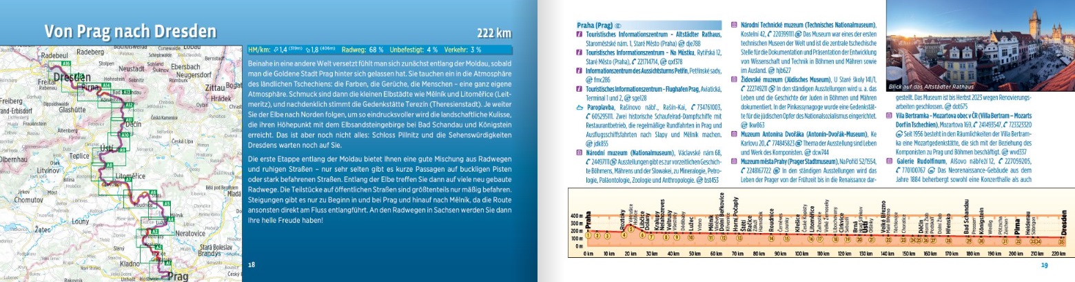 Praktisch fietsroutegidsje in handig formaat, met spiraalbinding. Deze Duitstalige boekjes bevatten gedetailleerde routekaarten, routebeschrijving, bezienswaardigheden (en overnachtingsmogelijkheden bij de meerdaagse routegidsen) en een code om de bijbehorende GPS-tracks vanaf de site te downloaden.