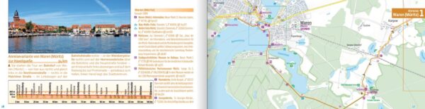 Praktisch fietsroutegidsje in handig formaat, met spiraalbinding. Deze Duitstalige boekjes bevatten gedetailleerde routekaarten, routebeschrijving, bezienswaardigheden (en overnachtingsmogelijkheden bij de meerdaagse routegidsen) en een code om de bijbehorende GPS-tracks vanaf de site te downloaden. * Die Havel hat in der Mecklenburgischen Seenplatte östlich von Waren (Müritz) ihren Ursprung und mündet in der Nähe von Havelberg in die Elbe. Die direkte Entfernung zwischen Quelle und Mündung beträgt zwar nur etwa 94 Kilometer, der Fluss allerdings windet sich auf einer Strecke von rund 330 Kilometern größtenteils durch das Bundesland Brandenburg. Dabei wird ein Höhenunterschied von lediglich 40 Metern überwunden.Der Verlauf der Havel ist vor allem von Abwechslung geprägt: Sie beginnt als kleines grabenähnliches Fließ, ist bereits nach 12 Kilometern schiffbar, durchfließt auf ihrem Weg zahlreiche malerische Seen – von kleinen Gewässern bis hin zu ausgedehnten Seenketten – und ist in einigen Bereichen auch kanalisiert. Diese Gegebenheiten des Flusses und die meist gute Führung der Route machen eine Radreise an der Havel zu einem besonderen Erlebnis. Der gut ausgebaute und einheitlich beschilderte Havel-Radweg verbindet die beiden beliebten Radfernwege Mecklenburgischer Seen-Radweg und Elbe-Radweg miteinander. In Mecklenburg-Vorpommern und im brandenburgischen Landkreis Oberhavel folgt der Havel-Radweg außerdem zu weiten Teilen dem Radfernweg Berlin-Kopenhagen. Anschließend geht es über Berlin-Spandau und Potsdam in die Stadt Brandenburg an der Havel. Bis Milow südlich von Rathenow verläuft die Route dann auf dem Radfernweg Tour Brandenburg. Durch das Schollener Land und über Havelberg kommen Sie schließlich an die Elbe zum gleichnamigen Radweg. Die Gesamtlänge des Havel-Radweges von der Quelle bis zur Mündung beträgt 392 Kilometer. Die Anreise von Waren (Müritz) ist 34 Kilometer lang, die Abreise von der Mündung bis nach Wittenberge 20 Kilometer. Die Hauptstrecke inklusive An- und Abreisevariante beträgt somit 446 Kilometer.Der Havelland-Radweg verläuft nördlich vom Havel-Radweg zwischen der Landesgrenze Brandenburg/Sachsen-Anhalt und Berlin-Spandau. Der hier im letzten Abschnitt beschriebene Teil zwischen Rathenow-Steckelsdorf und Berlin-Spandau ist 93 Kilometer lang. Diese Route ist so beschrieben, dass Sie auch eine rund 240 Kilometer lange Rundtour ab Berlin-Spandau fahren können, zuerst entlang der Havel dann zurück durch das Havelland.Die übrigen Varianten und Ausflüge haben insgesamt eine Länge von über 123 Kilometern.