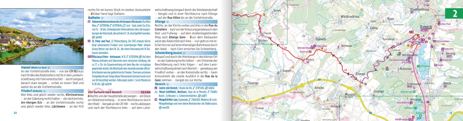 Praktisch fietsroutegidsje in handig formaat, met spiraalbinding. Deze Duitstalige boekjes bevatten gedetailleerde routekaarten, routebeschrijving, bezienswaardigheden (en overnachtingsmogelijkheden bij de meerdaagse routegidsen) en een code om de bijbehorende GPS-tracks vanaf de site te downloaden.