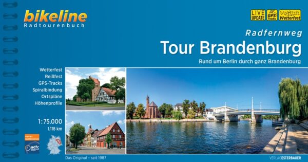 Deel uit een serie praktische duitstalige fietsroutegidsjes in handig formaat met spiraalbinding. De gidsjes bevatten gedetailleerde kaartjes met de route, routebeschrijving, bezienswaardigheden (en overnachtingsmogelijkheden bij de meerdaagse routegidsen). *** Die über 1000 km lange Strecke führt sie durch zahlreiche traumhaft schöne Naturräume wie die Prignitz, die Uckermark, den Spreewald oder den Fläming. Sie radeln auf gut ausgebauten Wegen durch tiefe Wälder und saftig grüne Wiesen, an blauen Seen vorbei und ruhigen Flüssen entlang. Ihr Weg führt Sie dabei durch elf Naturparks, drei Biosphärenreservate und einen Nationalpark; außerdem durchqueren Sie viele interessante Städte mit reizvollen historischen Stadtkernen. Eine abwechslungsreiche Tour durch das Bundesland rund um Berlin.