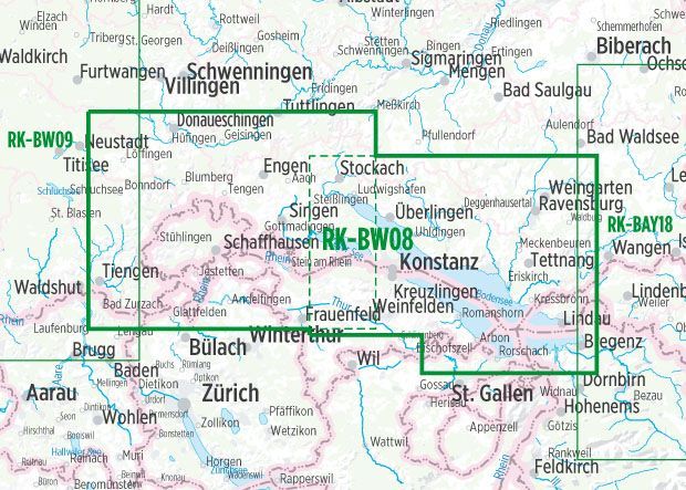 Kaarten en gidsen > Fietsen > Fietskaarten > Europa > Duitsland > Zuid-Duitsland > Baden-Württemberg > Bodenmeer, Schwäbische Alb > Bodensee Radkarte 1:75.000