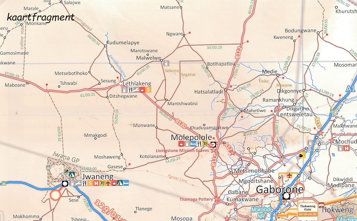 De belangrijkste kenmerken zijn: grote schaal 1/1.000.000; reistijden + afstanden zijn opgenomen op de kaart; uitgebreid net van wegen en paden in de natuurreservaten; gedetailleerde informatie over campings en attracties; grensovergangen aangegeven met openings- en sluitingstijden; bij elke stad staan de recente toeristische diensten vermeld; gedrukt op waterproof papier. Volledig Kgalagadi Park (grensoverschrijdend) inbegrepen. Met gedetailleerde kaarten van Moremi, Gaborone, Maun, Kasane and Savuti.