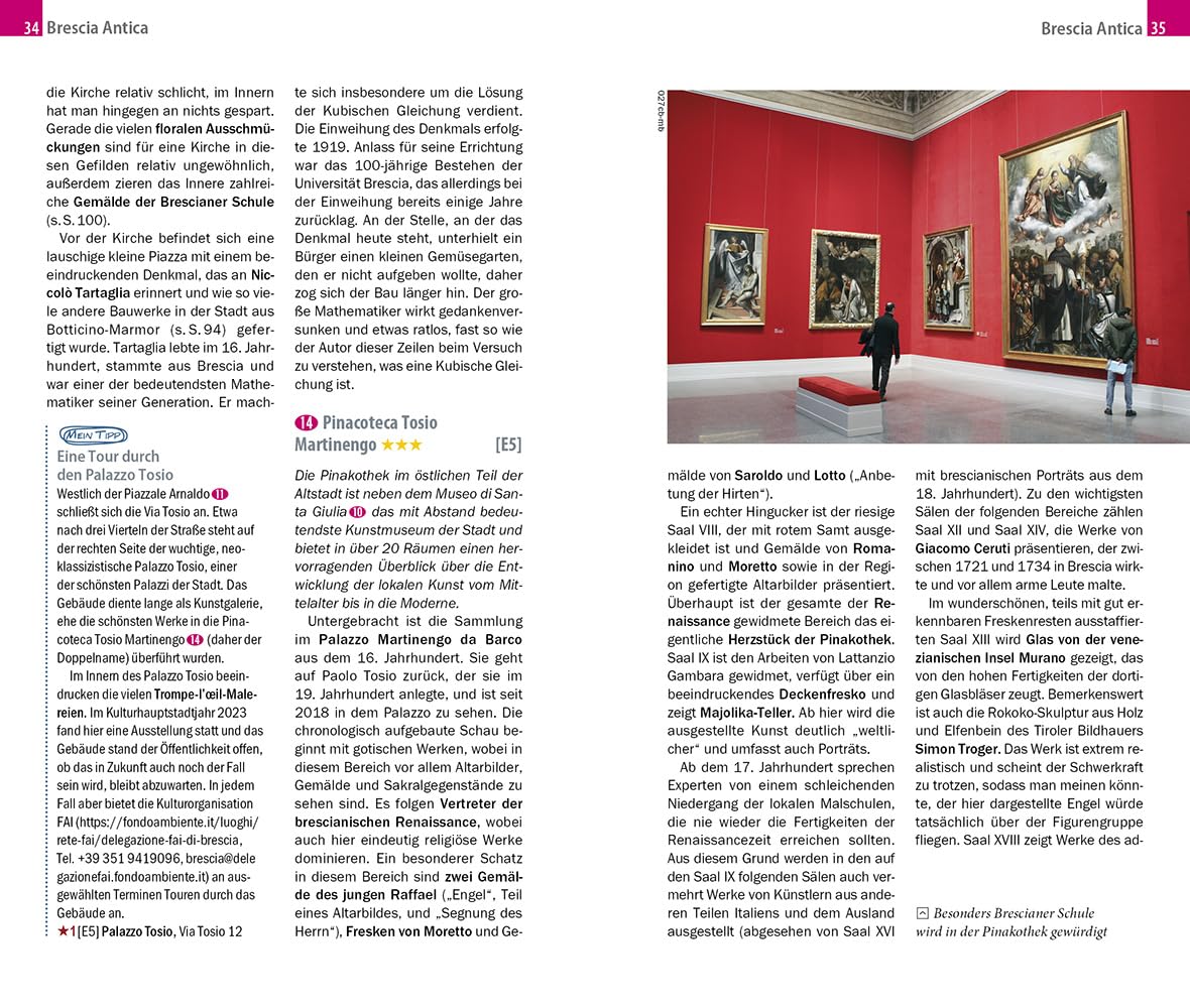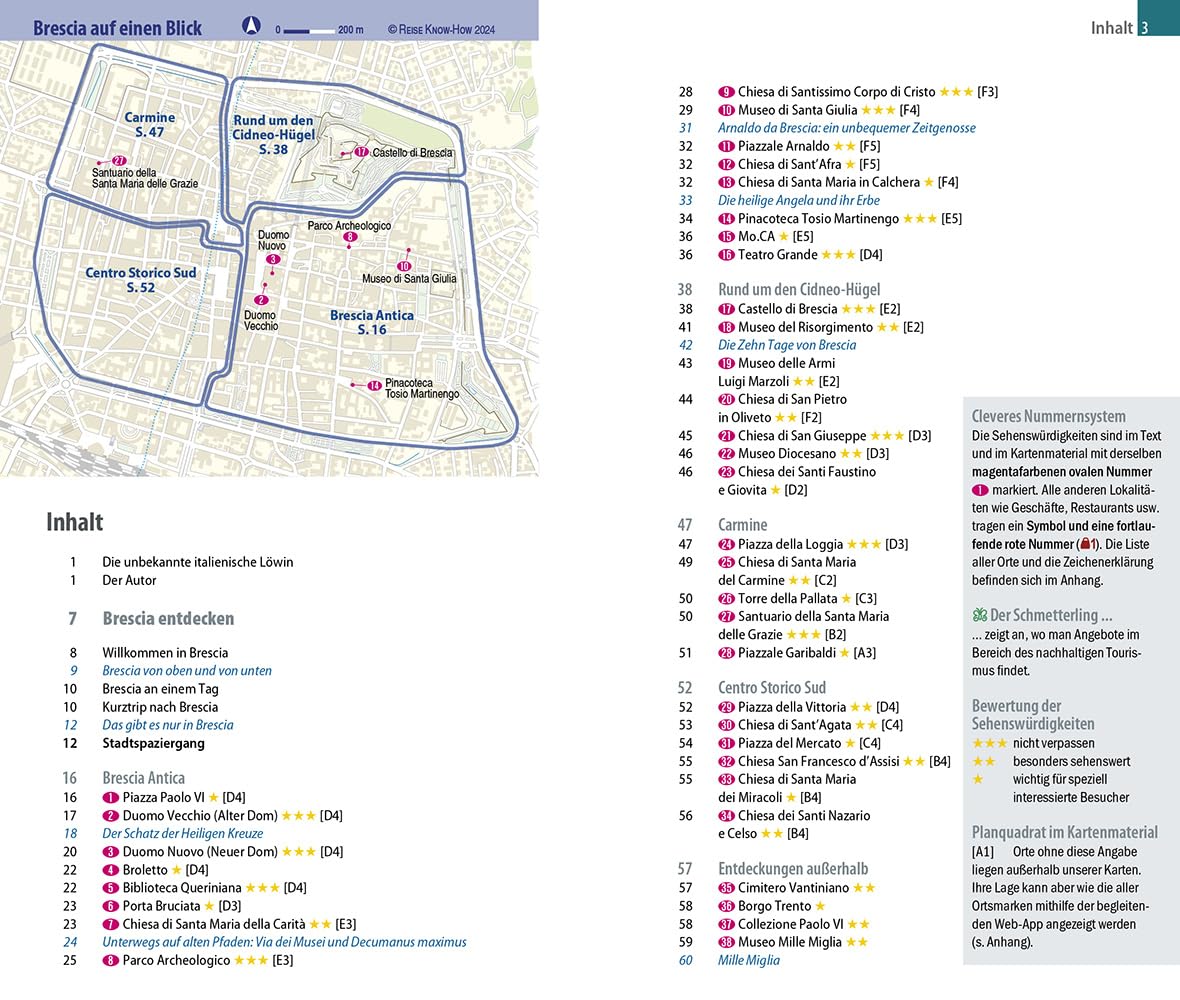 Das lombardische Brescia lebt von seinen Gegensätzen. Während im Parco Archeologico Spuren römischer Siedlungen zu sehen sind, fährt im Untergrund der Stadt eine hypermoderne, fahrerlose Metro. Von der mittelalterlichen Burganlage blickt man hinab auf moderne Glaspaläste. Im pittoresken Altstadtkern, geprägt vom Neuen Dom und dem Palazzo Broletto, herrscht geschäftiger Trubel. Boutiquen, die einen Hauch vom Glamour Mailands verströmen, Lokale mit lombardischen Spezialitäten und prachtvolle Sakralbauten bilden den Rahmen für einen abwechslungsreichen Aufenthalt. In der Umgebung laden der Gipfel des Monte Maddalena zum Wandern und die Weinhänge von Franciacorta zu Radtouren und Verkostungen ein.