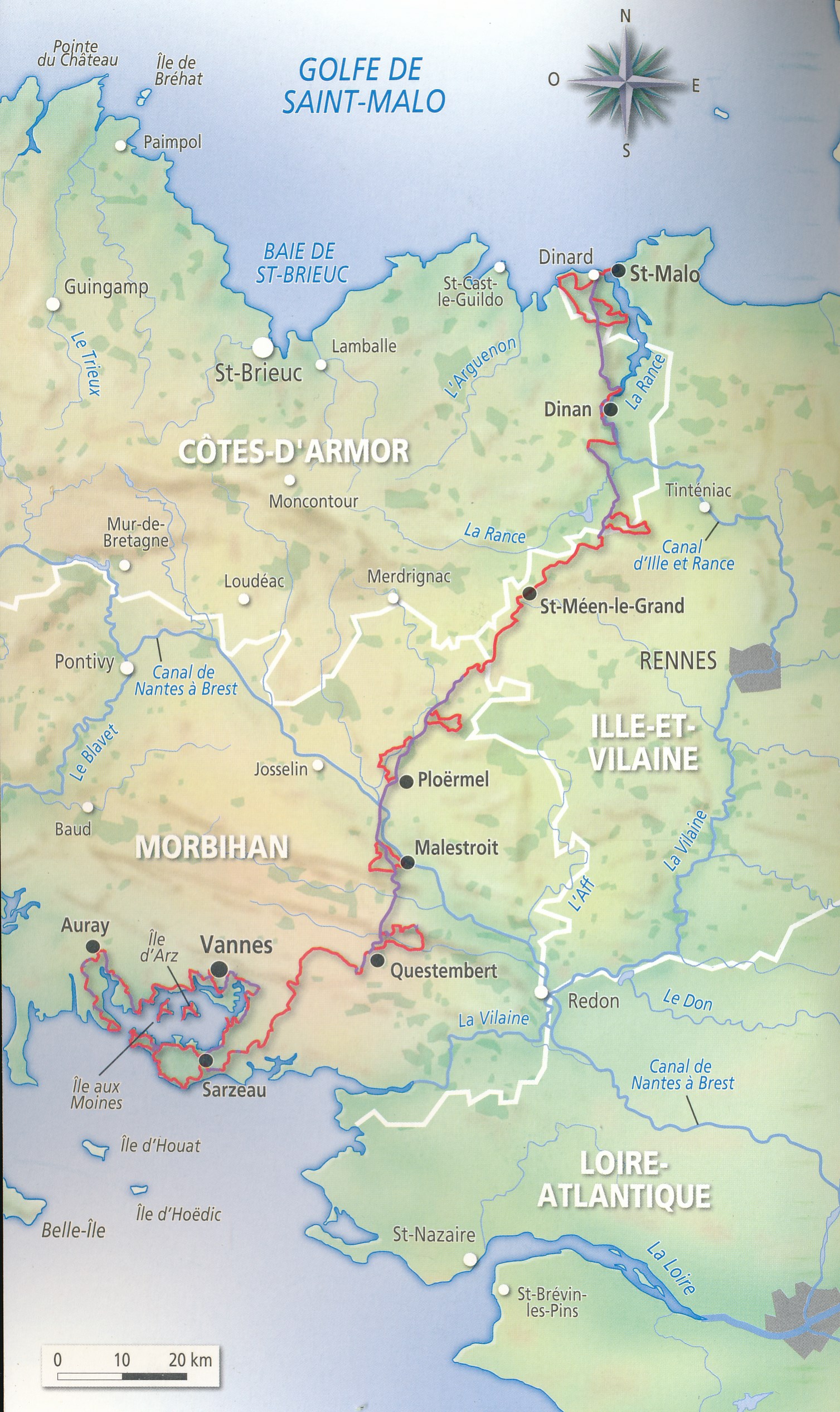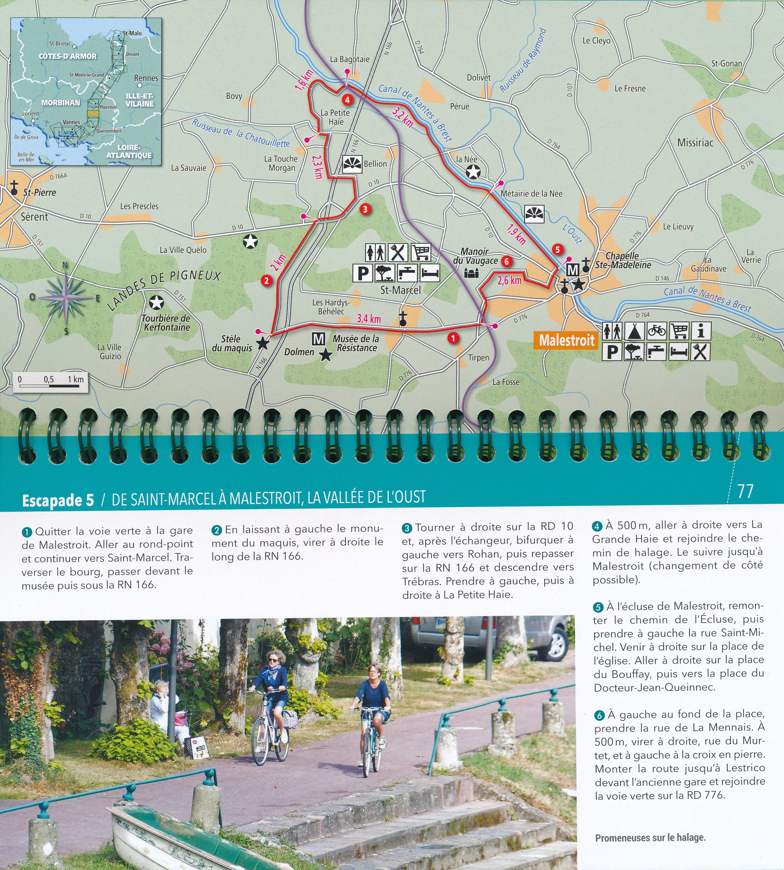 De essentiële praktische, gedetailleerde en geïllustreerde gids voor fietsen door Bretagne van noord naar zuid in 21 etappes en 8 extra rondtochten. De hoofdroute begint in Saint-Malo en gaat helemaal tot aan de Golf van Morbihan.