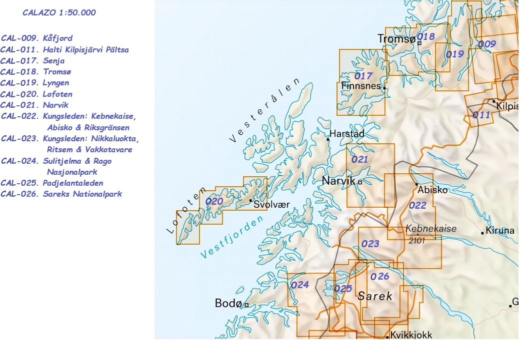 "Wij bij Calazo hebben vijf kaarten op schaal 1:50.000 ontwikkeld met een uniek niveau van detail die de gehele route van de Kungsleden tussen Abisko in het noorden en Hemavan in het zuiden bestrijken.