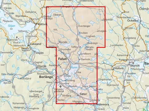 Bjursås, Svärdsjö, Enviken, Sundborn, Grycksbo, Borlänge, Säter, Torsång