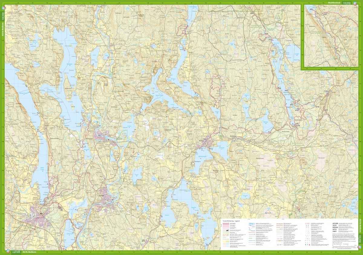 Deze kaart is ontworpen voor iedereen die geïnteresseerd is in het buitenleven rond Karlskoga en Filipstad. Hij beslaat het populaire natuurgebied Brattforsheden. Het is zowel een traditionele terreinkaart voor wandelaars en fietsers als een meer- en kustkaart voor kajakken of langeafstandschaatsen. De gedetailleerde kaart bevat een verscheidenheid aan gemarkeerde wandelpaden, campings en schuilhutten. Langeafstandsschaatsers van het Schaatsnetwerk en peddelaars hebben ook bijgedragen met aanbevolen startpunten voor tochten in het gebied. De kaart is gedrukt op het onverwoestbare tyvek.