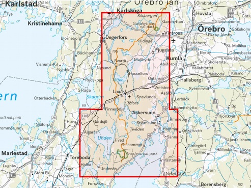 Mooie, gedetailleerde wandelkaart, gedrukt op het oersterke tyvek. Deze kaart bestrijkt de magische bossen rond het Nationaal Park Tiveden, de eilanden in de noordelijke Vättern archipel en deeltrajecten van de LAW Bergslagsleden (etappes 11-17).