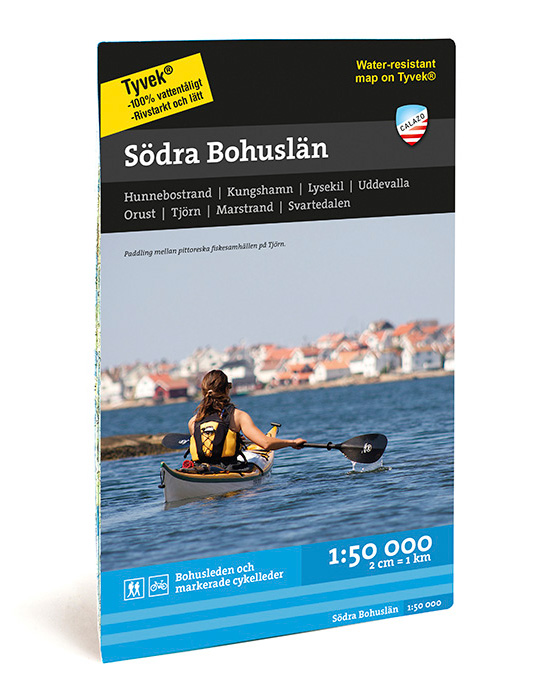 Dit is de zuidelijke van twee kaarten over de regio Bohuslän (de noordelijk is nr. CAL-102). Het is zowel een wandelkaart als een waterkaart voor peddelaars en andere watersporters. De kaart toont de lokale kortere wandelpaden en bestrijkt de etappes 7-15 van de Bohusleden (een LAW). Op de kaart is belangrijke informatie voor kanoërs toegevoegd. Denk hierbij aan ondieptes en vaargeulen, routes voor verkeer over de archipel en interessante voorzieningen zoals levensmiddelenwinkels en sauna's in de archipel.