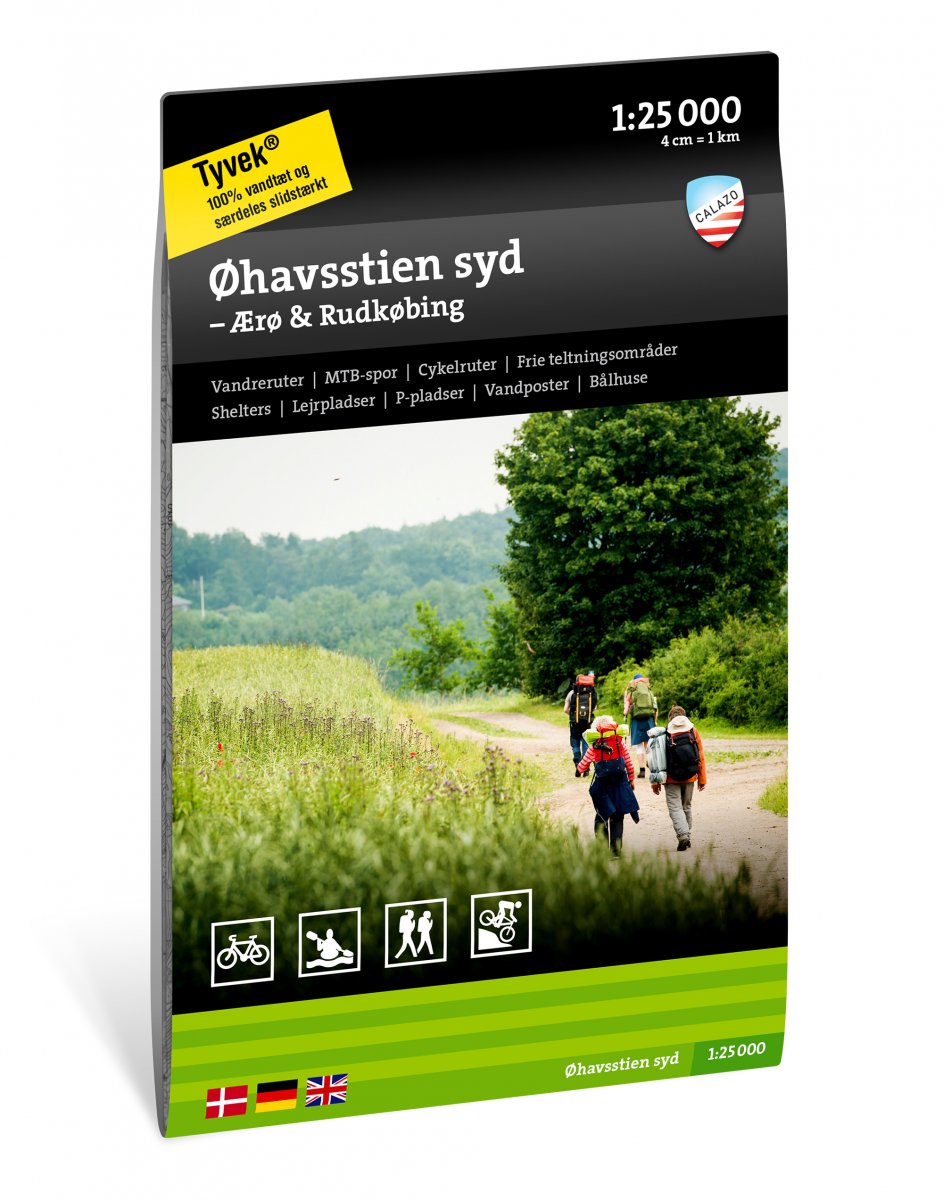 Calazo outdoorkaarten zijn een nieuwe serie outdoorkaarten ontwikkeld met de nadruk op wandelen, kajakken of kanoën, fietsen en mountainbiken. Dit is een van de twee kaarten die zijn ontwikkeld met een focus op de wandelroute 'Øhavsstien', waarbij de zeven delen van de route, van in totaal 220 km, in detail worden beschreven. Ook de fietsroute 'Østersøruten' (National Route 8) en andere lokale fietsroutes en wandelroutes zijn duidelijk op de kaart aangegeven. Daarnaast vindt u informatie over gratis kampeerterreinen en tentplaatsen, schuilhutten, parkeermogelijkheden en tips voor overnachtingen en overnachtingen enz.