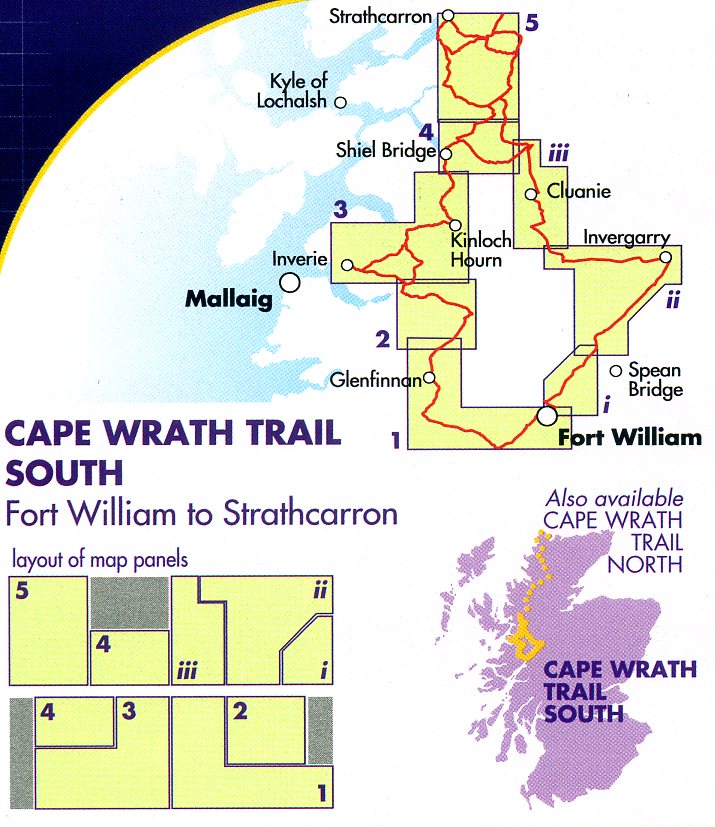 This map covers the southern section of the route, from Fort William to Strathcarron. The Cape Wrath Trail is a challenging route from Fort William to Cape Wrath. It is around 200 miles long and passes through some of Scotland's wildest and most spectacular scenery. The trail has evolved from use and is not an officially recognised National Trail. There is no single definitive route. There are various ways of tackling the traverse all of which are highlighted on the maps leaving the actual route choice to the individual walker.