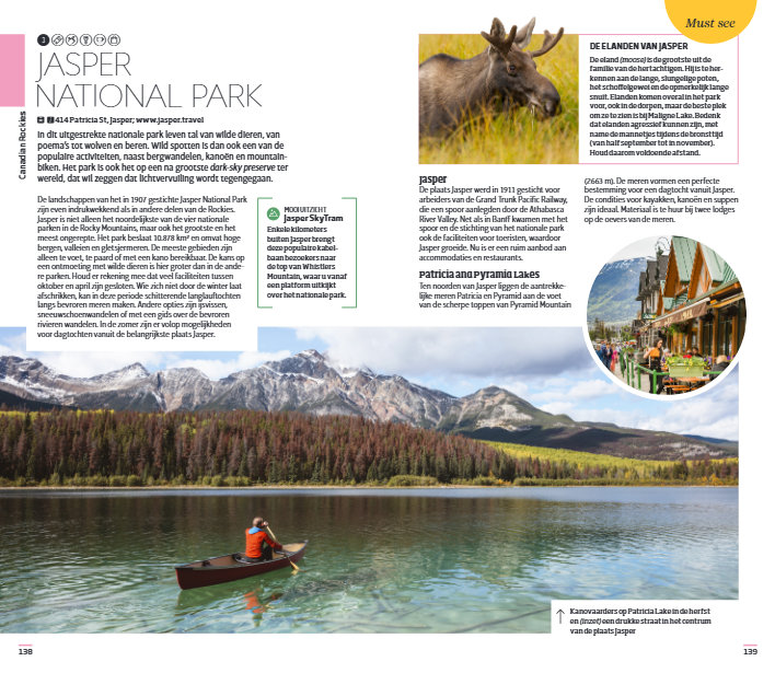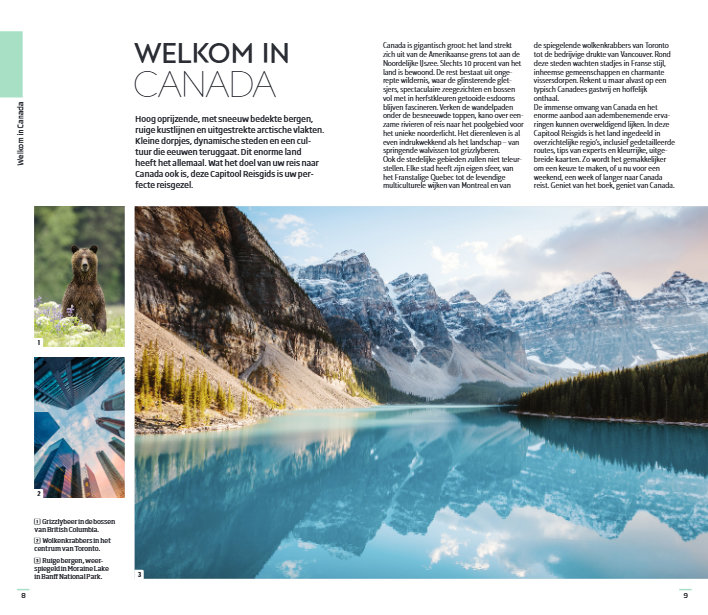 Deze reisgids verdeelt Canada in veertien regio's: van Toronto tot Yukon en van Vancouver Island tot Newfoundland en Labrador. Bewonder de spectaculaire watervallen van de Niagara Falls, spot walvissen aan de kust, maak een hike door Banff National Park of verdwaal tussen de enorme wolkenkrabbers van Toronto: deze gids toont je de parels van Canada.