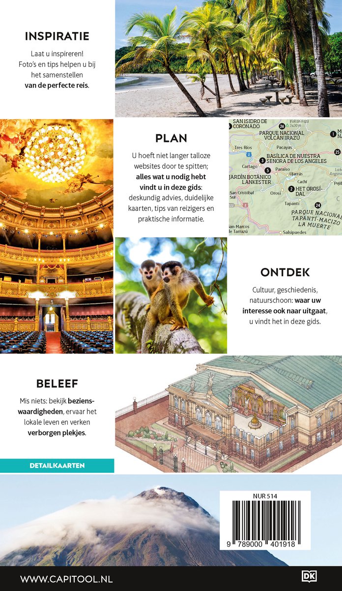Deze reisgids verdeelt Costa Rica in zeven regio's: San José, Centrale Hoogvlakte, Centraal Pacifische kust en Zuid-Nicoya, Guanacaste en Noord-Nicoya, Het noorden, De Caribische kust en Het zuiden. Ga mee met een nachtelijke excursie in de jungle op zoek naar de schuwe jaguar, bezoek een van de hipste steden van Midden-Amerika, San José, geniet van de surfmogelijkheden en van de witte stranden en de blauwe zee, de inheemse cultuur en de heerlijke keuken van de Caribische kust; deze gids toont je de parels van Costa Rica.