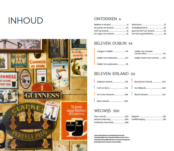 Deze reisgids verdeelt Ierland in acht regio's: Dublin, Zuidoost-Ierland, Cork en Kerry, de Lower Shannon, West-Ierland, Noordwest-Ierland, de Midlands en Noord-Ierland. Ontdek verschillende whiskeys tijdens een proeverij, surf bij de gouden stranden van Sligo, dwaal door de historische hallen van Trinity College in Dublin of bewandel de kustpaden van de Giant's Causeway. Van filmische landschappen, schitterende kastelen en prehistorische vindplaatsen tot populaire sportevenementen, traditionele muziek en de nieuwe regionale keuken: deze gids toont je de parels van Ierland.