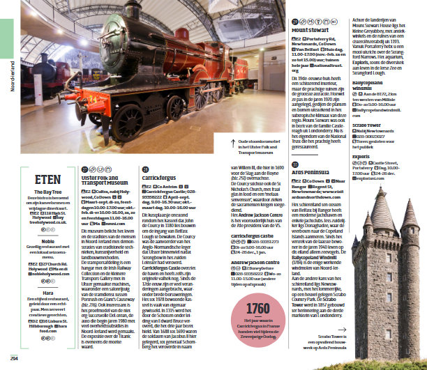 - Opengewerkte illustraties tonen het interieur van must-sees, zoals Dublin Castle, Castletown House, Bantry House en Bunratty Castle en Folk Park