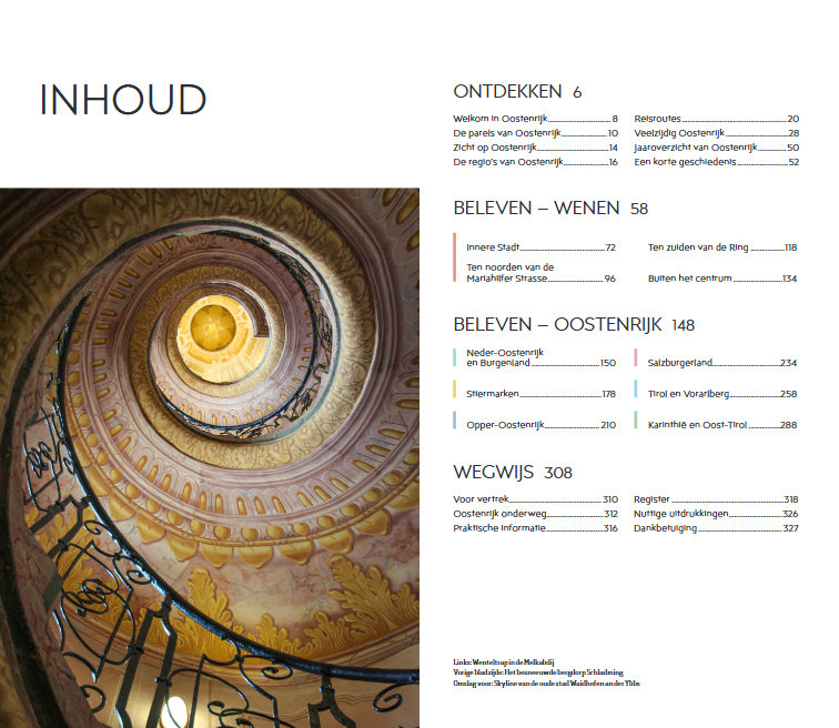 Deze reisgids verdeelt Oostenrijk in zeven gebieden: Wenen, Neder-Oostenrijk en Burgenland, Stiermarken, Opper-Oostenrijk, Salzburgerland, Tirol en Vorarlberg en Karinthië en Oost-Tirol. Overweldigende natuur, de mooiste kunstcollecties en de muzikale geschiedenis; deze gids toont je de parels van Oostenrijk.