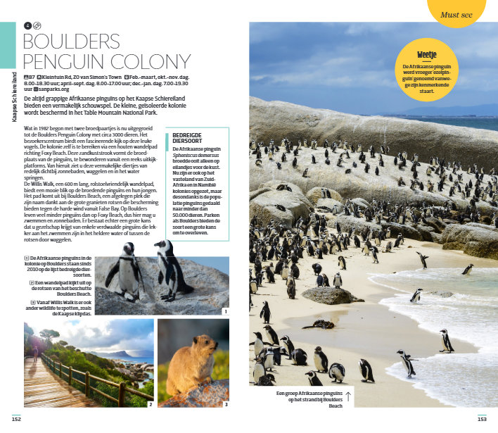 - Schitterende illustraties tonen de must sees, zoals het V&A Waterfront, Groot Constantia, Stellenbosch, Graaff-Reinet en het Palace of the Lost City