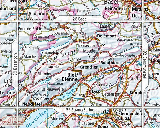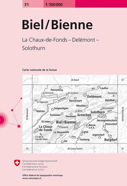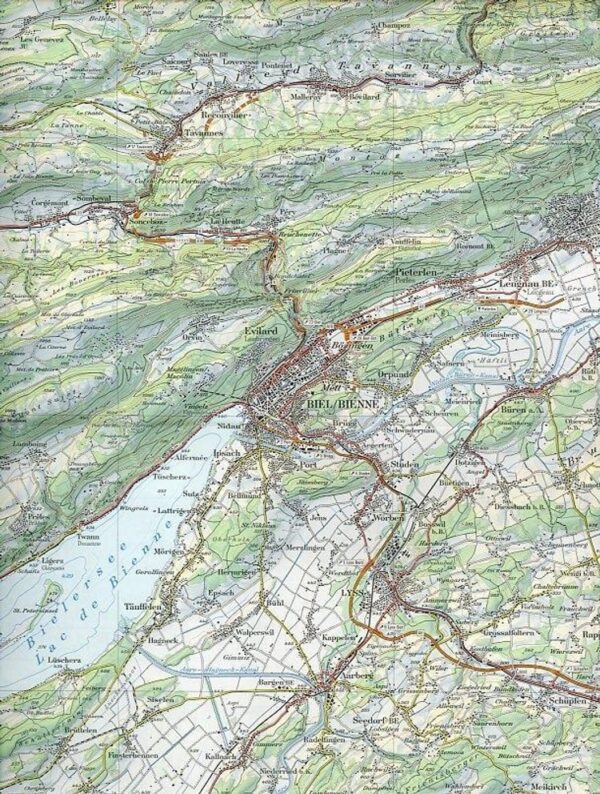 Kaarten en gidsen > Kaarten & plattegronden > Landkaarten en wegenkaarten > Europa > Zwitserland en Oostenrijk (en Alpen als geheel) > Zwitserland > Jura, Genève, Vaud > CH-31 omgeving Biel / Bienne overzichtskaart 1:100.000