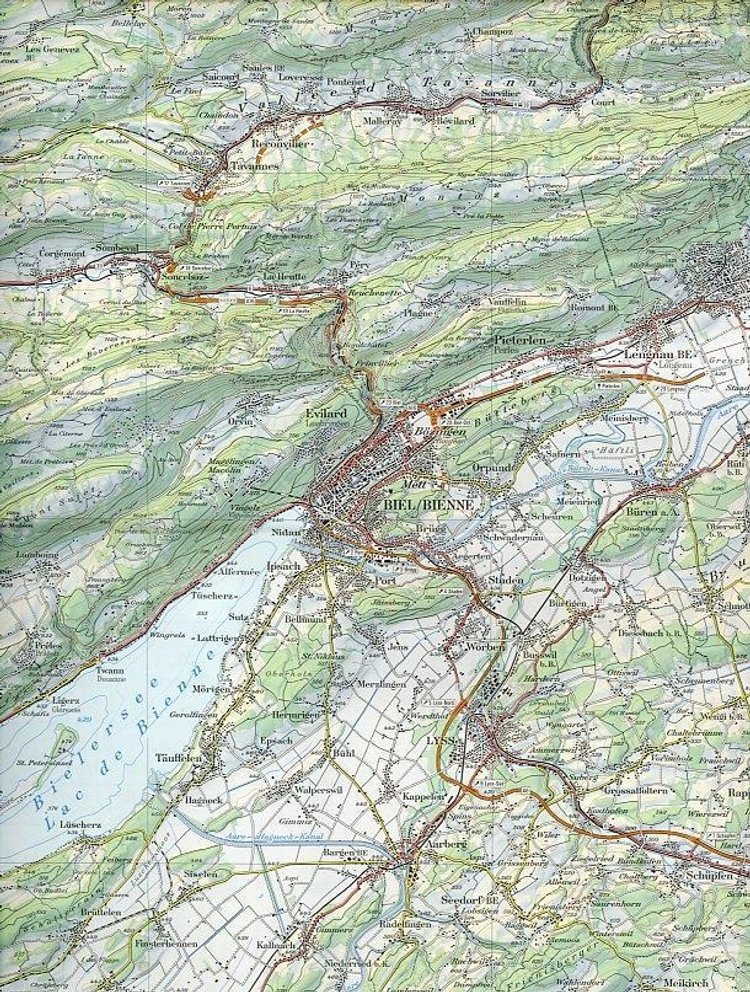 CH-31 omgeving Biel / Bienne overzichtskaart 1:100.000