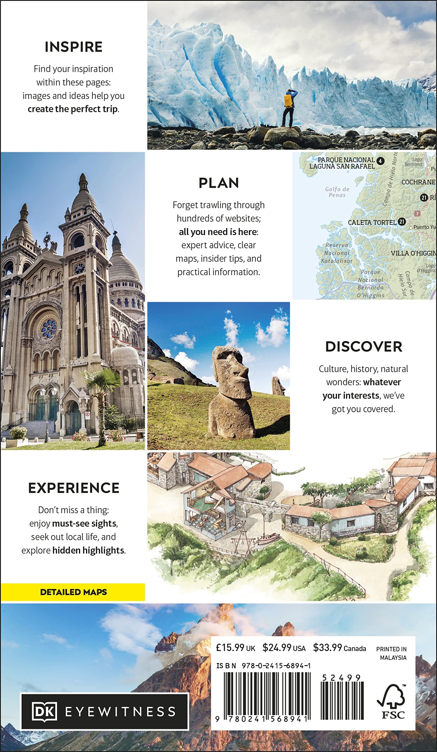 Engelstalige Capitoolgids. Bijzonder fraaie en complete gidsen, waarin de illustraties de kern vormen van de informatie. Mooie tekeningen van gebouwen en plattegronden in vogelvlucht en overige illustraties. Handig naslagwerk voor het gebruik ter plekke, maar (mede daarom?) kort gehouden achtergrondinformatie. Met korte lijsten voor vervoer en verblijf. | The ideal travel companion, full of insider advice on what to see and do, plus detailed itineraries and comprehensive maps for exploring this breathtakingly beautiful country.Tour picturesque Chilean vineyards, stargaze in the Atacama Desert, explore the glaciers of the Torres del Paine National Park in Patagonia or admire Rapa Nui's moai statues: everything you need to know is clearly laid out within colour-coded chapters. Discover the best of Chile and Easter Island with this indispensable travel guide.Inside DK Eyewitness Travel Guide Chile and Easter Island:- Over 35 colour maps help you navigate with ease- Simple layout makes it easy to find the information you need- Comprehensive tours and itineraries of Chile and Easter Island, designed for every interest and budget- Illustrations and floorplans detail iconic sights such as Santiago's fascinating Museo Chileno de Arte Precolombino and leafy Parque Metropolitano de Santiago, the unusual Casa Museo Isla Negra, the breathtaking Rano Raraku and more - Colour photographs of Chile's colonial cities, historic architecture, museums and art galleries, ancient settlements, colourful towns and villages, natural wonders and spectacular landscapes - including mountains, glaciers, geysers, beaches, lakes, volcanoes, and flora and fauna - as well as Easter Island's fascinating archaeological sites, mysterious monuments, crater lakes, plus nearby Robinson Crusoe Island, with its dramatic volcanic landscape and endemic flora and fauna- Detailed chapters, with area maps, cover Santiago, including Plaza de Armas and Santiago Centro, West of Santiago Centro, Northeast of Santiago Centro; Chile beyond the capital, including Central Valley, Norte Grande and Norte Chico, Lake District and Chiloe, Northern Patagonia, Southern Patagonia and Tierra del Fuego; Easter Island and Robinson Crusoe Island - Historical and cultural context gives you a richer travel experience: learn about the country's rich history and culture, iconic architecture, ancient settlements, festivals and events, and more - Experience Chile and Easter Island with features on the landscape and wildlife, the biodiversity of Chile, peoples of Chile and Easter Island, music and dance, literature, theatre and cinema, Chilean art and architecture, sports in Chile, Fiestas Patrias, funiculars of Valparaiso, history of wine in Chile, regional arts and crafts, pukaras and the Camino del Inca, myths and folklore of Chiloe, and more- Essential travel tips: our expert choices of where to stay, eat, shop and sightsee, plus how to get around, useful phrases, and visa and health information.