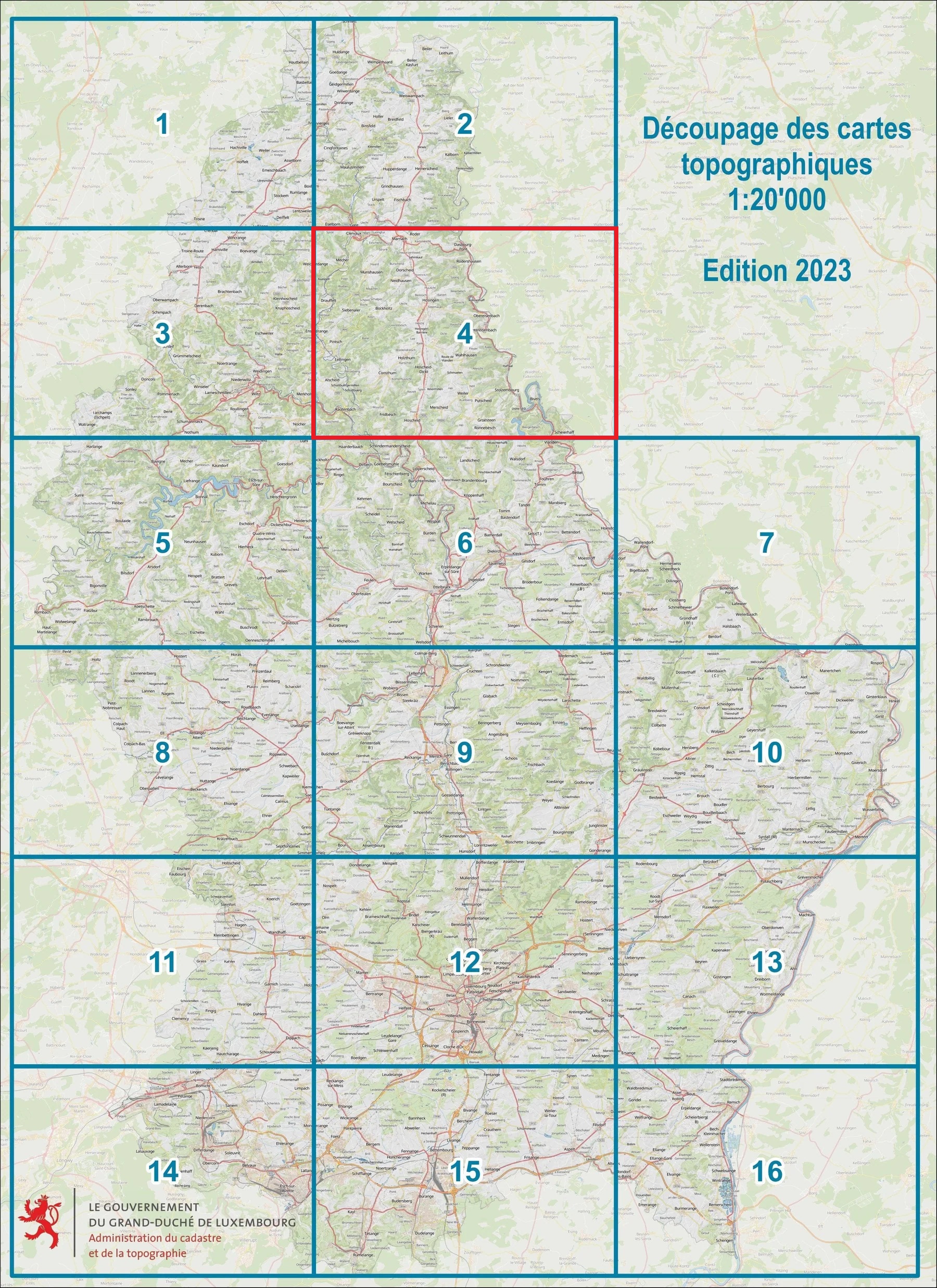 De topografische kaart zonder toeristische informatie is ontworpen door de Administration du Cadastre et de la Topographie met behulp van meervoudige gegevens van de instantie zelf en andere overheidsinstanties in Luxemburg.