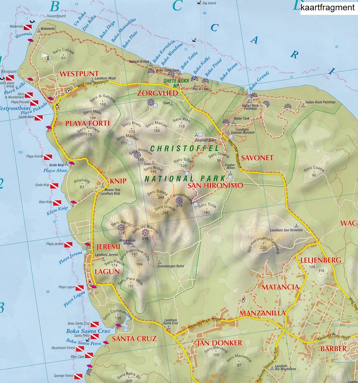 De kaarten van Kaprowski hebben volgende kenmerken: compleet wegennet gedetailleerd tot op straatniveau van het gehele eiland; volledige straten- en wegenregister; detailkaarten van de belangrijkste steden; aantrekkelijke kleuren lay-out; rijk aan topografische details; dieptelijnen en lengte- en breedtegraden en andere referentiepunten. Interessante objecten worden ook getoond op de kaarten, zoals: restaurants en hotels aangeduid op de kaart en weergegeven in het register; wandel- en fietsroutes; duiklocaties en dieptes met index, snorkelplekken, scheepswrakken; stranden, watersportzones, kayakroutes, aanmeerplaatsen; mooie vergezichten, natuurreservaten, beschermde gebieden, vogel- kijk- en -beschermingszones, zeeschildpadbroedplaatsen, meloen cactusvelden, riffen, geologische formaties, andere natuurlijke attracties; historische sites met data, ruïnes van suikerfabrieken, kerken, begraafplaatsen, kantoren van de toeristische dienst, informatiepanelen; nationale en internationale luchthavens, bruggen, vuurtorens, jachthavens, havens, veerdiensten, parkeerplaatsen, tankstations en andere nuttige plaatsen.