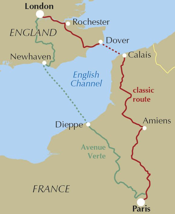 Deel uit een serie Engelstalige gidsen in handig vestzakformaat. Vaak met plastic omslag. Bevat gedetailleerde routebeschrijvingen, veel praktische (verblijfs-)informatie voor onderweg en leuke tips en wetenswaardigheden. Begeleidende kaartjes zijn aan de summiere kant. | Guidebook to the London to Paris Bike Ride, including both the 500km traditional route, which makes use of cycle tracks and quiet roads plus a ferry crossing from Dover, and the 400km Avenue Verte, a waymarked route via Newhaven/Dieppe which makes greater use of dedicated cycle paths. Each takes 5-7 days and they can be combined for a round trip.