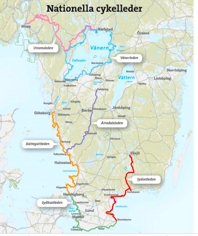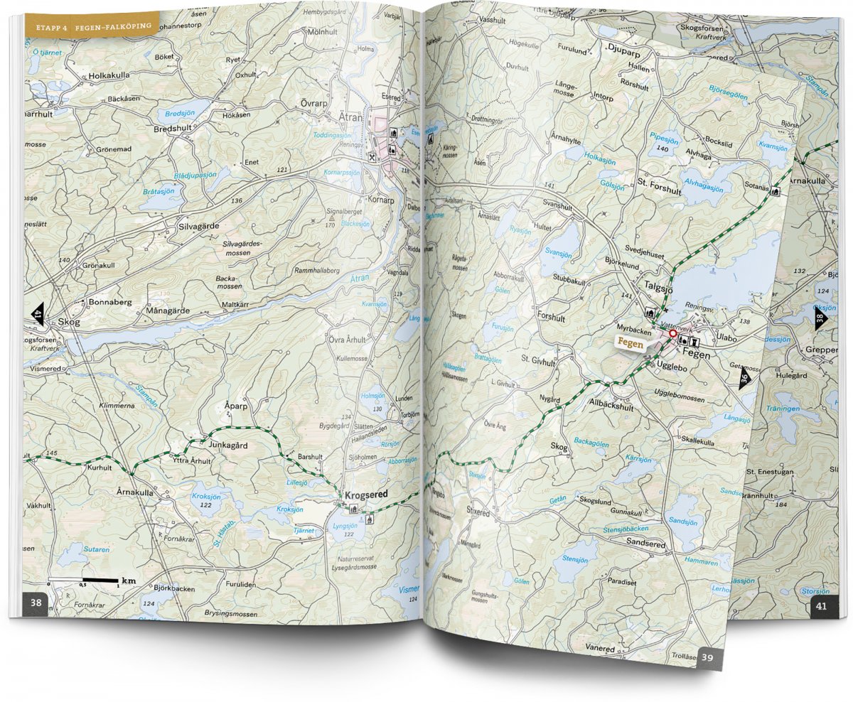 Kronkelende landweggetjes en autovrije spoordijken. Ätradalsleden bestaat uit vele idyllische kilometers tussen Falköping en Falkenberg. Ongeveer de helft van de route loopt over oude spoordijken die volledig autovrij zijn. Fietsers kunnen onderweg genieten van zowel prachtige landschappen als lekker eten.